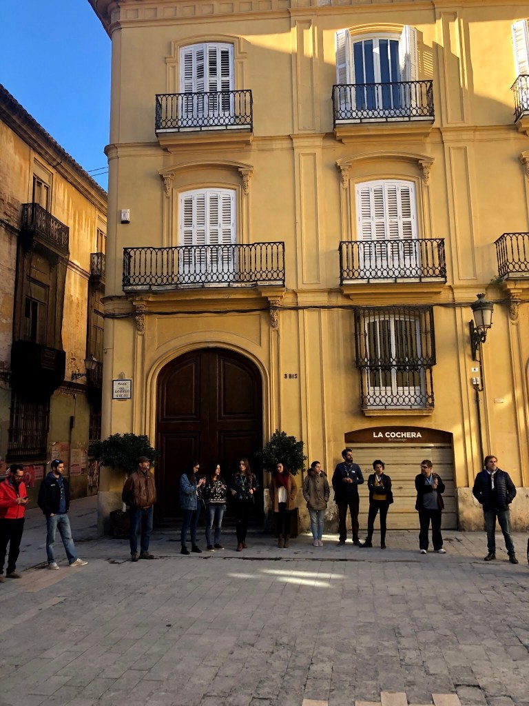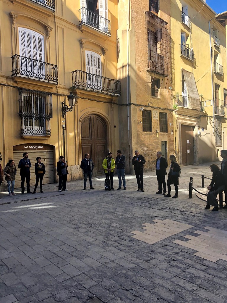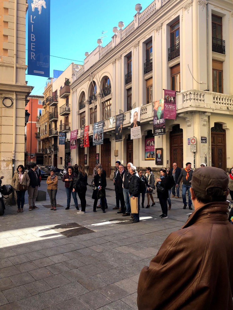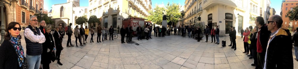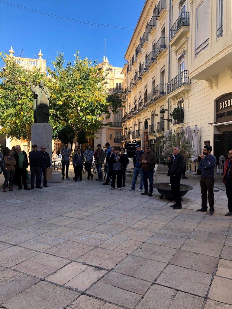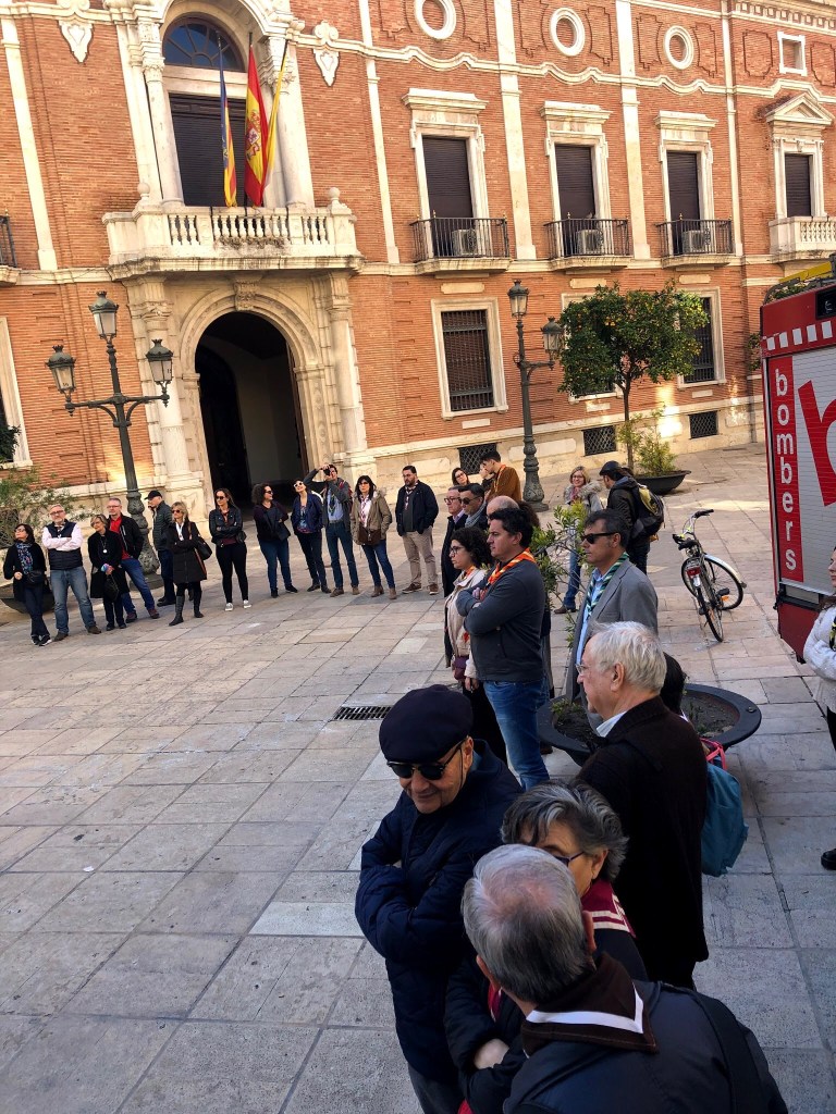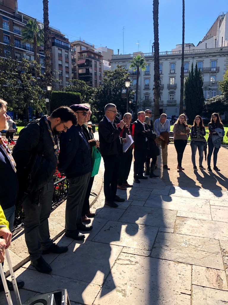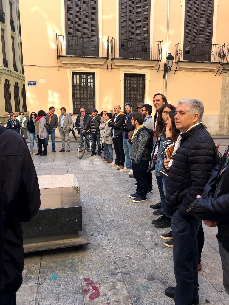 Un bon grapat d’escoltes de totes les èpoques es van trobar amb motiu d’aquesta convocatòria i van gaudir d’un matí espectacular de sol i bona temperatura, metre feien el recorregut, des de la Casa dels Obrers fins a l’antiga seu de la Delegació Diocesana d’Escoltisme, dirigits i perfectament informats per José Ignacio Cruz, scout, membre de la Fundació Scout Sant Jordi i professor de la Universitat de València.