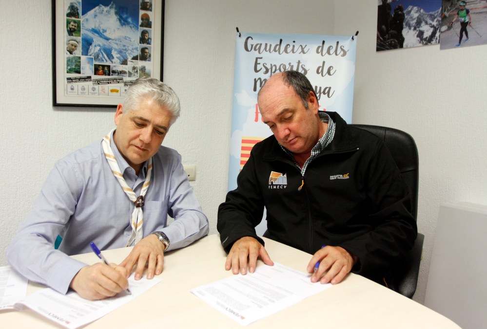 Carles Ferrís, president de la Federació d’Esports de Muntanya i Escalada de la Comunitat Valenciana (FEMECV), i Pedro Tamarit, president de la Fundació Scout Sant Jordi de la Comunitat Valenciana, van signar, el passat dilluns 15 d’abril, un conveni de col·laboració entre ambdues entitats al qual estableixen com a objectius principals el desenvolupament d’accions conjuntes de voluntariat i educació ambiental, cultural i esportiva, amb interés especial en la millora de la seguretat a la muntanya i les bones pràctiques ambientals.